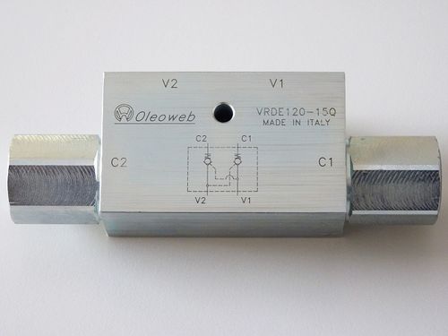 该管式双向液压锁为侧面进油,两头出油接油缸上下腔,有利于管路的安装。规格大小有G1/4、G3/8、G1/2。阀体为钢件,耐压范围为350bar